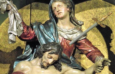 Das laut Signatur von Giovanni Pietro de Pomis 1611 geschaffene Gemälde befand sich ursprünglich nicht am Hochaltar, sondern hing zunächst in einer Kapelle oder an einem Seitenaltar. Erst um 1700 wurde es an dieser prominenten Stelle der Kirche präsentiert, da das Bild die Wallfahrer in Scharen anlockte.