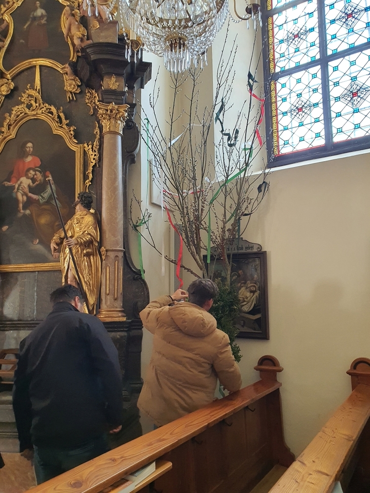 Am Palmsonntag fand die erste Sternwallfahrt des Seelsorgeraumes Kaiserwald statt - Ziel war die Kaiserwaldkapelle in unserer Pfarre. Trotz ziemlichen Regens haben sich mehr als 60 Wallfahrer eingefunden und haben bei einer Wortgottesfeier ihre Palmbuschen segnen lassen. Bei einer Agape konnten sich die Teilnehmer austauschen und haben dann noch gesegnetes Salz für die Osterspeisen mit nach Hause genommen.