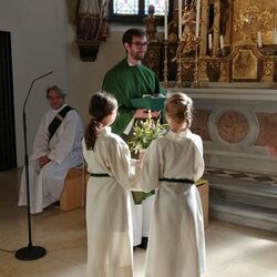 Der feierliche Gottesdienst mit Vikar Gerhard Hatzmann wurde vom Kirchenchor unter der Leitung unserer Organistin Magdalena Moser musikalisch gestaltet.