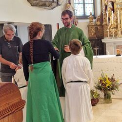 Nach herzlicher Begrüßung durch Diakon Michi Zepf zelebrierte Markus, der ehemals Pastoralpraktikant in unserer Pfarre und Pastoralreferent im Seelsorgeraum Kaiserwald gewesen war, in festlichem Rahmen die heilige Messe.
