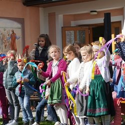 So feierten Groß und Klein mit Vikar Gerhard Hatzmann und Diakon Michi Zepf die heilige Messe zum Palmsonntag in einem schönen Miteinander. Die Kindergartenkinder sowie einige MS-Schülerinnen gestalteten die Feier mit und die MINIS versahen nicht nur ihren Dienst am Altar, sondern trugen auch die „Passion“ vor - in einer einfacheren Fassung, mit passenden Liedstrophen und Symbolen. Auch die Landjugend nahm teil und kam nach guter Tradition mit ihrem großen Palmbuschen.