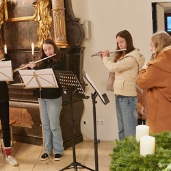Musikalisch umrahmte wieder die Musikschule Premstätten die Feier. Volksmusik und Streichermusik erfüllten die Kirche mit freudvollen vorweihnachtlichen Klängen.