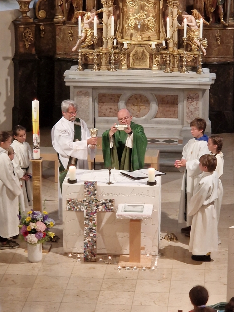 Zelebriert wurde die hl. Messe von Vikar Gerhard Hartmann und Diakon Michi Zepf, der die vielen Kinder zusammen mit den Minis zur Evangeliumsprozession und zum Vater-unser-Kreis einlud – spannende Momente für unsere Kleinen!