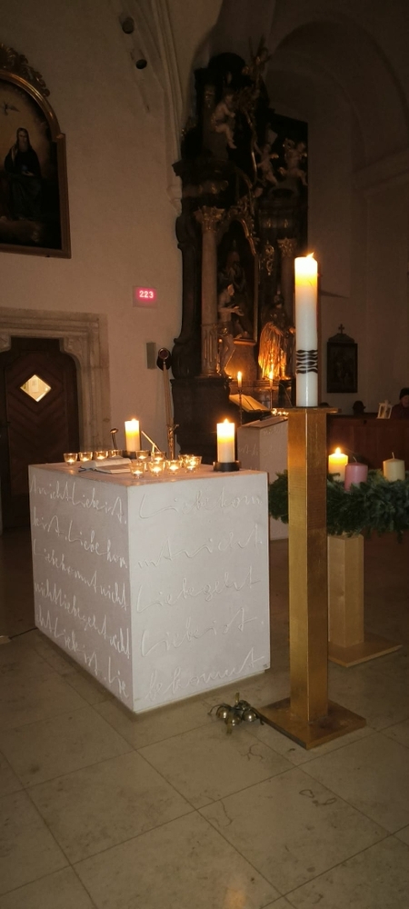 In dieser besonderen Messfeier bei Kerzenlicht besinnen wir uns in der fast dunklen Kirche auf das Kommen des Lichts, das alle Dunkelheit durchdringen wird!